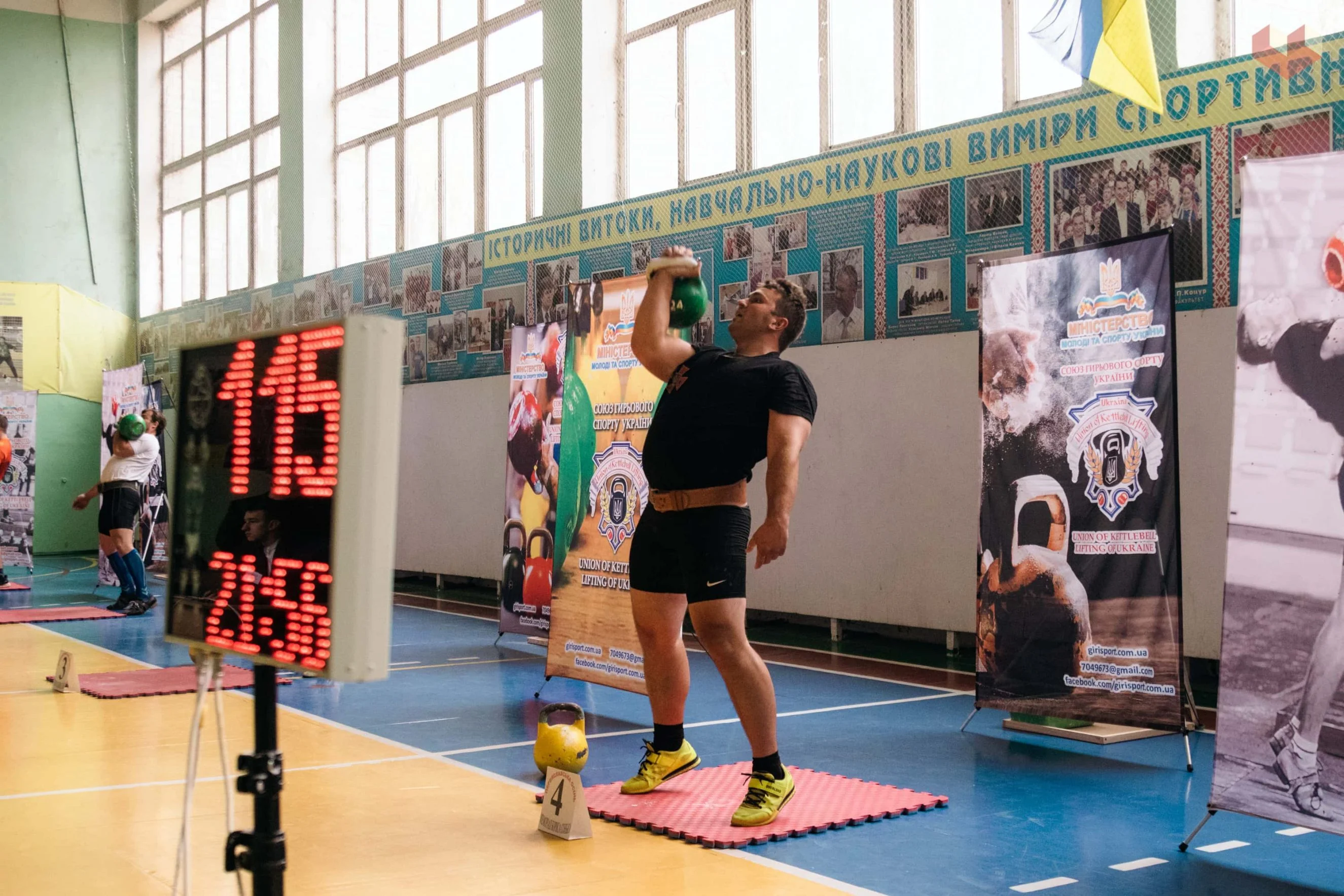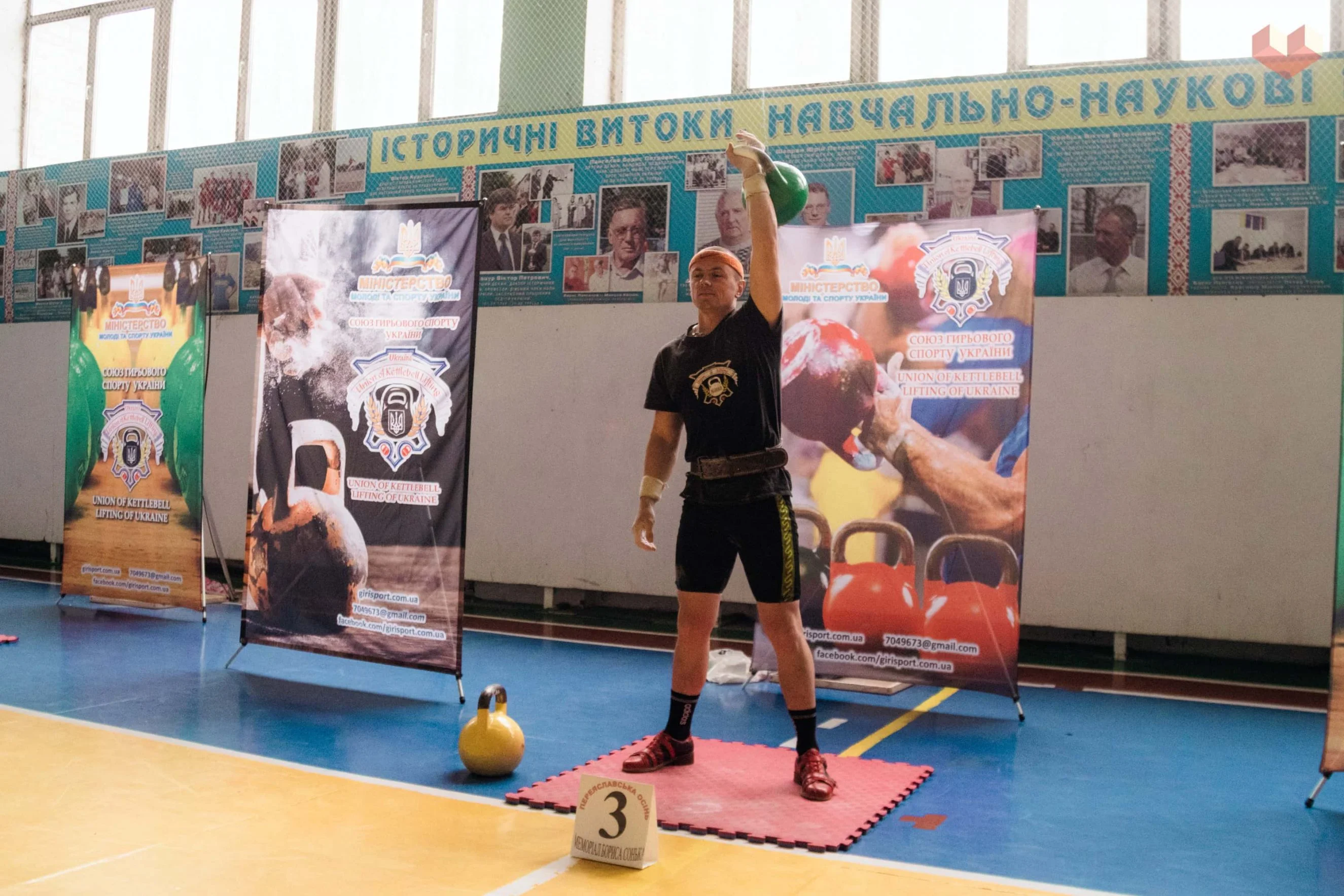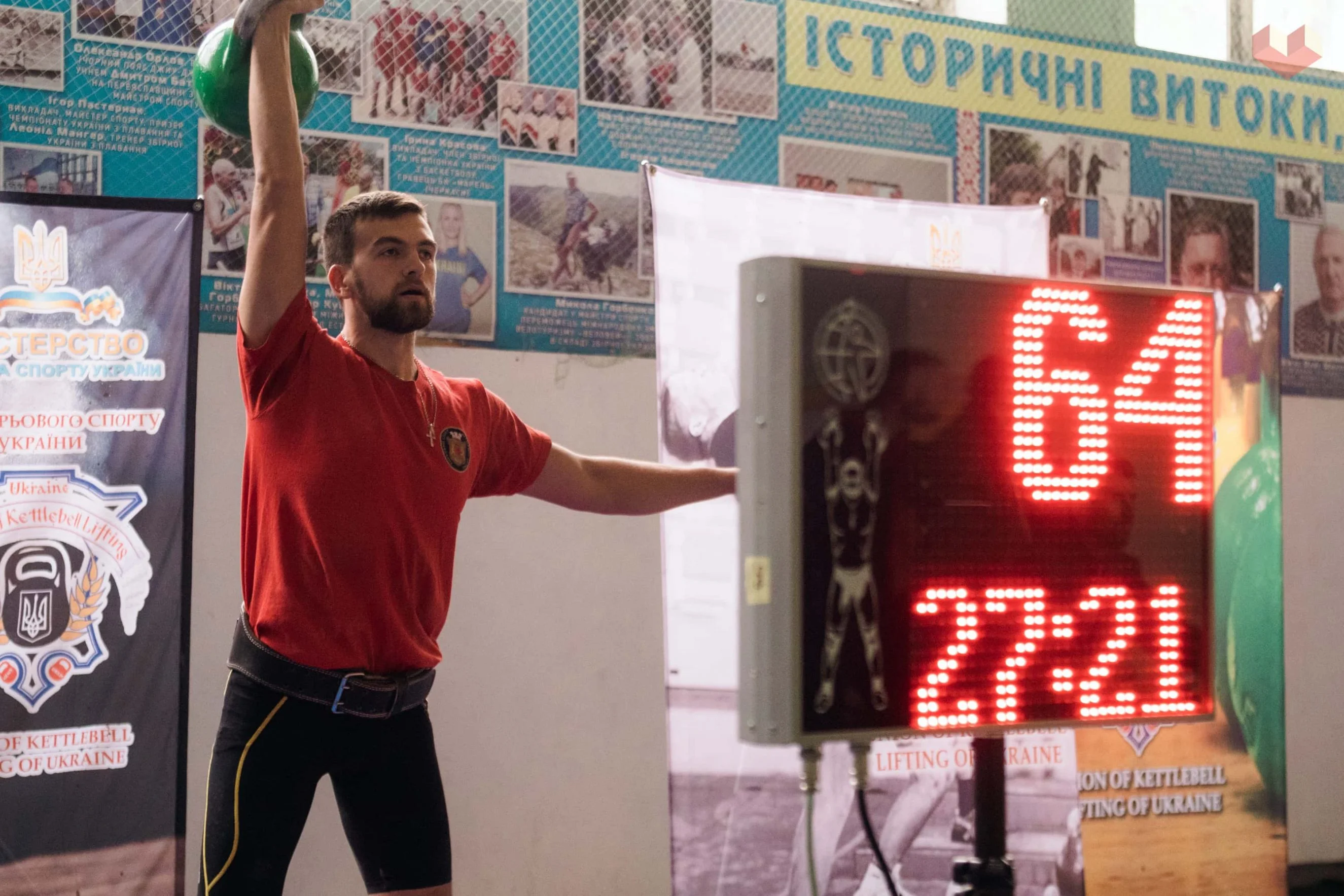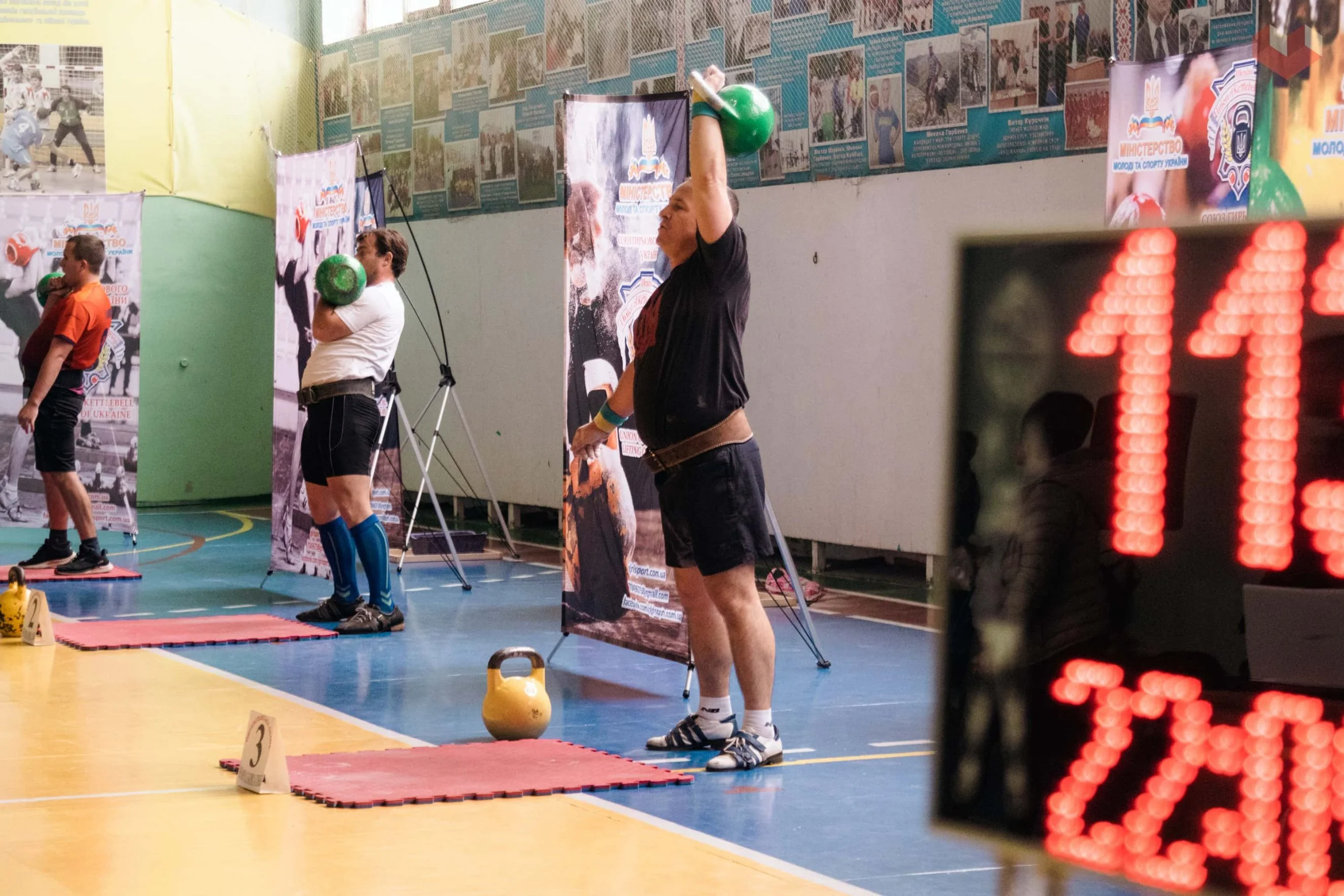 Першим у півгодинному марафоні з поштовху 24-кілограмової гирі у ваговій категорії до 78 кг став Євген КАЛІБЕРДА (617 разів) з Чернігівщини. Другим у цьому ж змаганні був Руслан МЕДВЕДЕНКО (486 разів), а третім – Ігор ВАСЬКОВСЬКИЙ (430 разів). Обидва спортсмени з Київщини.