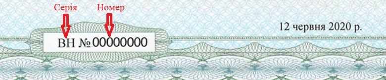 Сформований в ЄДЕБО документ має одну літеру та дві цифри у серії та шість цифр у номері.
