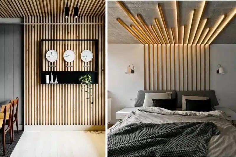 Для кухонь і ванних кімнат доцільно використовувати вологостійкі матеріали, такі як ПВХ чи композитні панелі. Вони не бояться пари, конденсату чи бризок води. У вітальнях і спальнях популярністю користуються дерев’яні або шпоновані варіанти — вони надають інтер’єру природності та затишку.