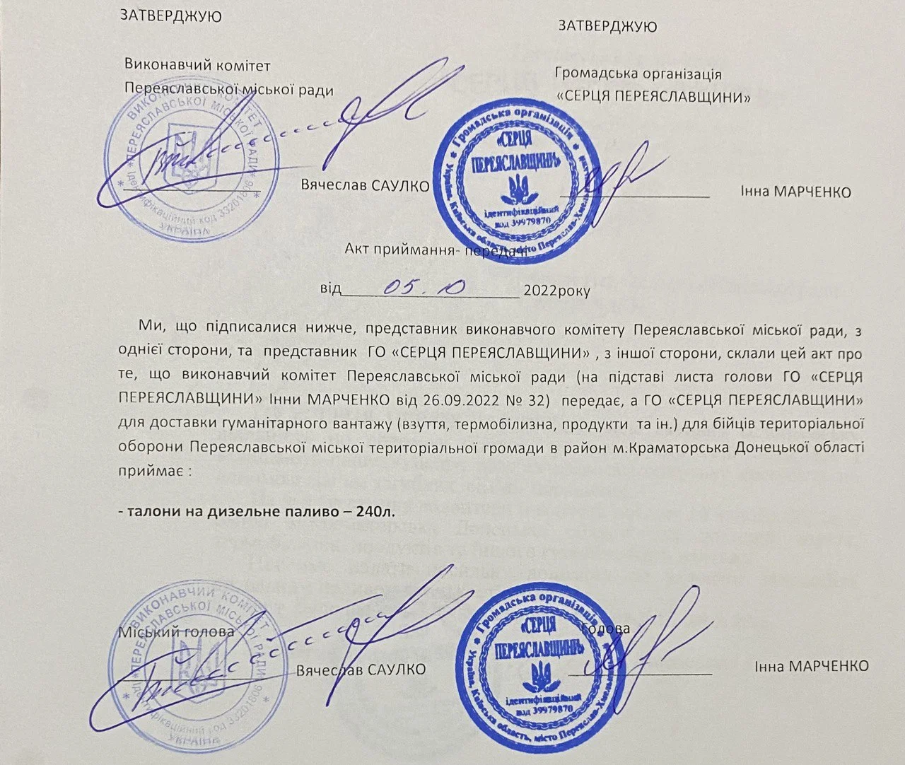 В особистій розмові Інни Марченко з нашим журналістом, вона розповіла, що неодноразово усно зверталася до Вячеслава Саулка, але нічного не отримала. Лише на офіційний запит на пальне, який вона також виставила на своїй сторінці у Фейсбук, вони отримали позитивну відповідь.