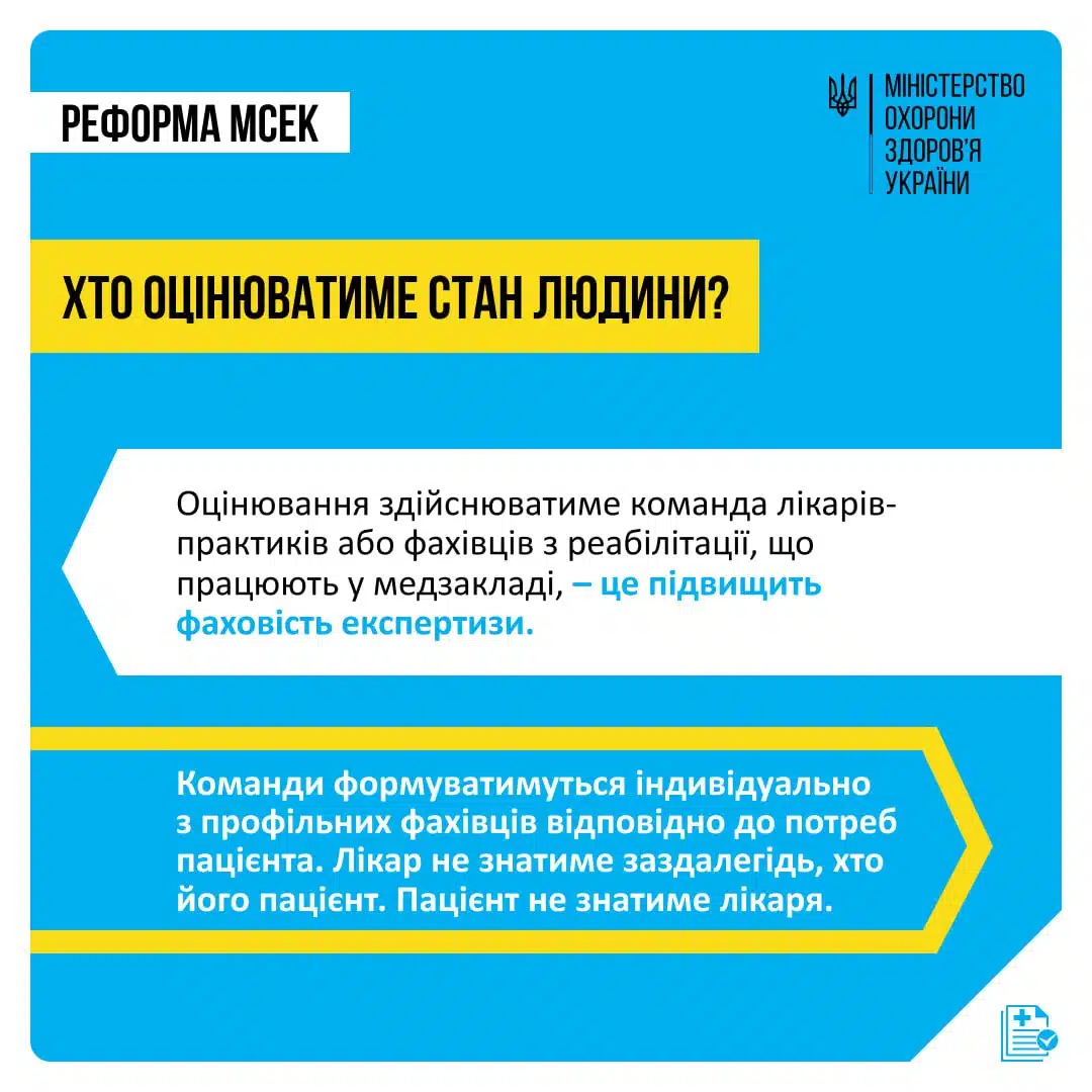 У МОЗ наголошують, що застарілу, не персоналізовану, неефективну і корумповану систему МСЕК замінять новою системою, яка базуватиметься на оцінці функціонування людини в повсякденному житті.