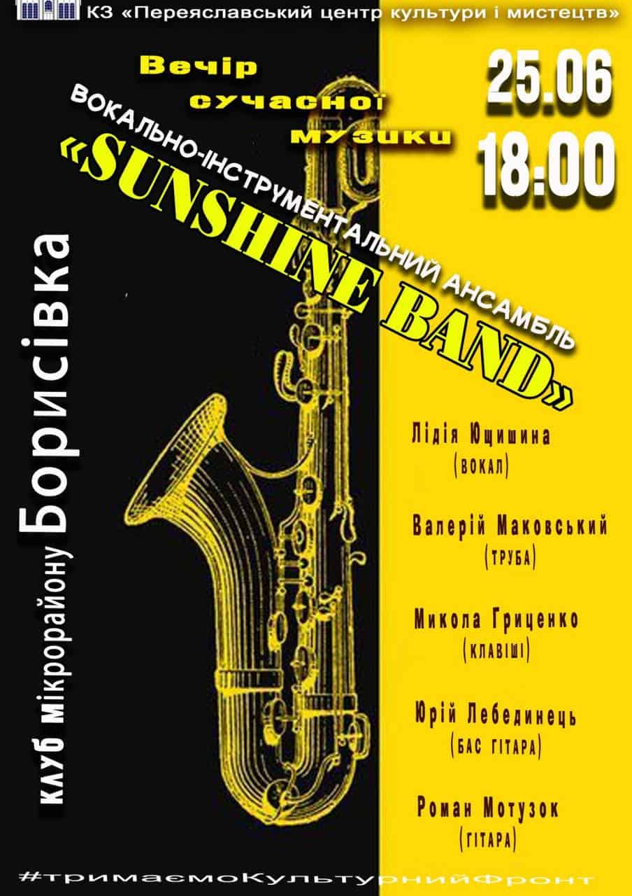 У суботу, 24 червня, вокально-інструментальний ансамбль «Sunshine Band» виступить у клубі мікрорайону Борисівка. Артисти запрошують на свій захід, що розпочнеться о 18:00.