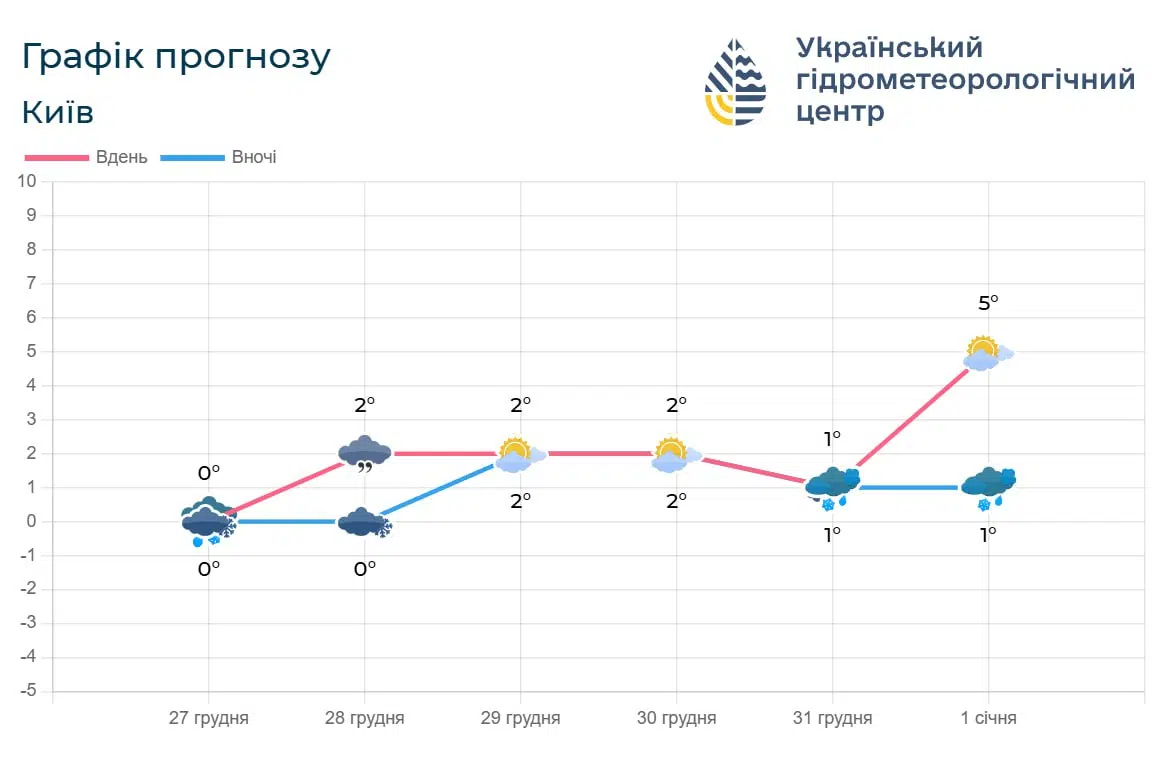 Фото: графік прогнозу погоди на Київщині з 27 грудня по 1 січня / Український гідрометцентр