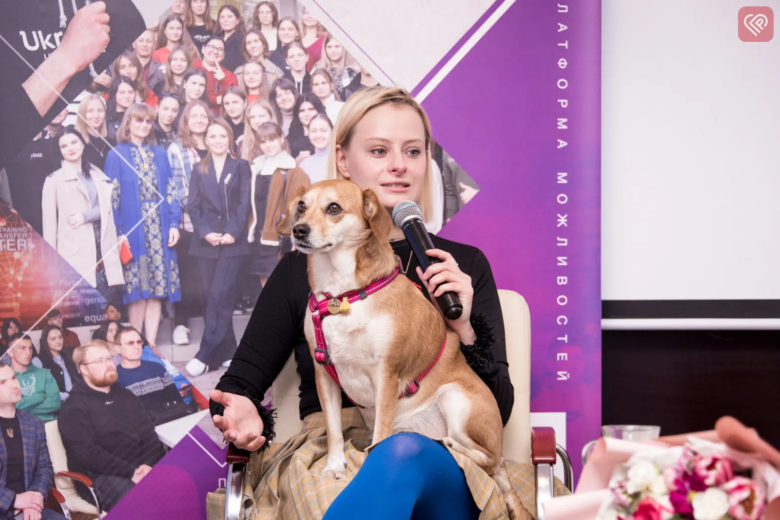 На зустрічі була ще одна зірка – собачка Марла, відома серед прихильників творчості Саші та її чоловіка, музиканта Сергія Гусака (Ницо Потворно). Вона то сиділа на руках у господині, то жваво взаємодіяла з аудиторією, а після заходу навіть познайомилася з песиком Аскольдом, улюбленцем університету.