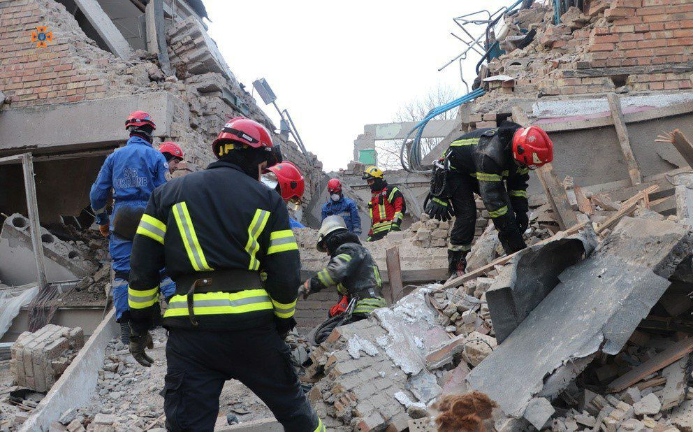 «Станом на 07:00 загинуло 3 особи, травмовано 2 особи та врятовано 1 особу. Ймовірно під завалами перебуває 4 особи. На місці події залучено 111 осіб та 28 од. техніки, з них від ДСНС – 95 осіб та 20 од. техніки, в тому числі Мобільний рятувальний центр швидкого реагування та 2 кінологічні розрахунки», – повідомляють рятувальники.