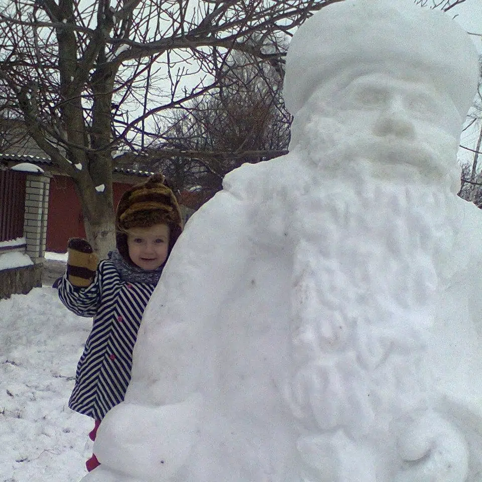 «Вимога була єдина – маленький Антон (нині захисник України – прим.авт.) мав накидати велику купу снігу, аби було з чого ліпити. Пригадую, як ми ліпили мавпу і, напевно, її ніхто особливо й не побачив, бо пішов мокрий сніг і все почало танути. Як ми не вкривали її плівкою, але температура ставала все вищою, і вона розтанула. На згадку лишилася світлина незакінченого проєкту. Згодом традицію на два роки перервали, бо зими, на жаль, не були сніжними – якщо сніг і був, то він швидко танув», – розповіла нам історію своїх творінь Жанна Федорук.