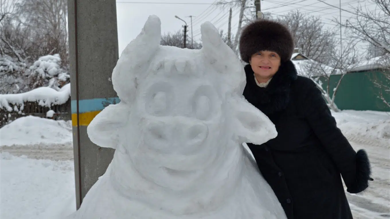 За рік до повномасштабного вторгнення Жанна Федорук виготовила біля свого подвір’я на вулиці Солонці символ 2021 року – бичка. Каже, якщо буде кому нагорнути сніг, неодмінно продовжить і після нашої Перемоги. Ми ж сподіваємося, що це буде зовсім незабаром.