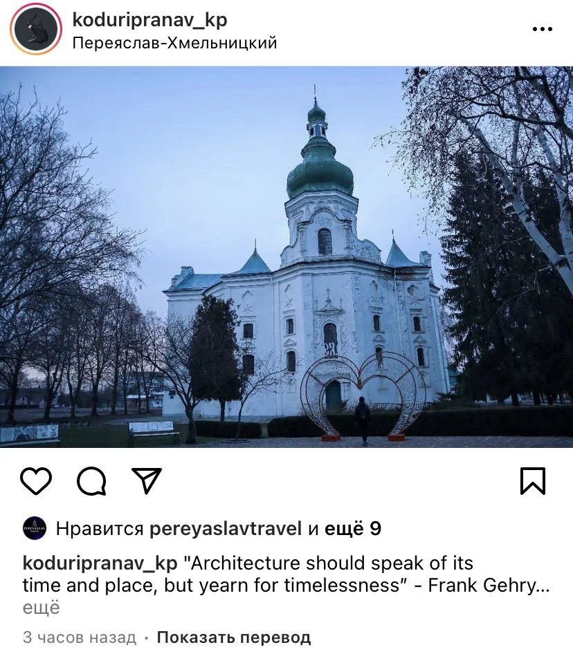 «Я приїхав в Україну на зимові канікули. Причиною відвідування мною Переяслава було вивчення вашої космічної церкви, але коли я приїхав, ми з другом досліджували місто і не мали можливості досліджувати космічний храм. Так, я точно повернуся влітку і буду рекомендувати Переяслав багатьом іншим» – відписав нам Пранав Кодурі у відповідь на наш запит у соціальних мережах.