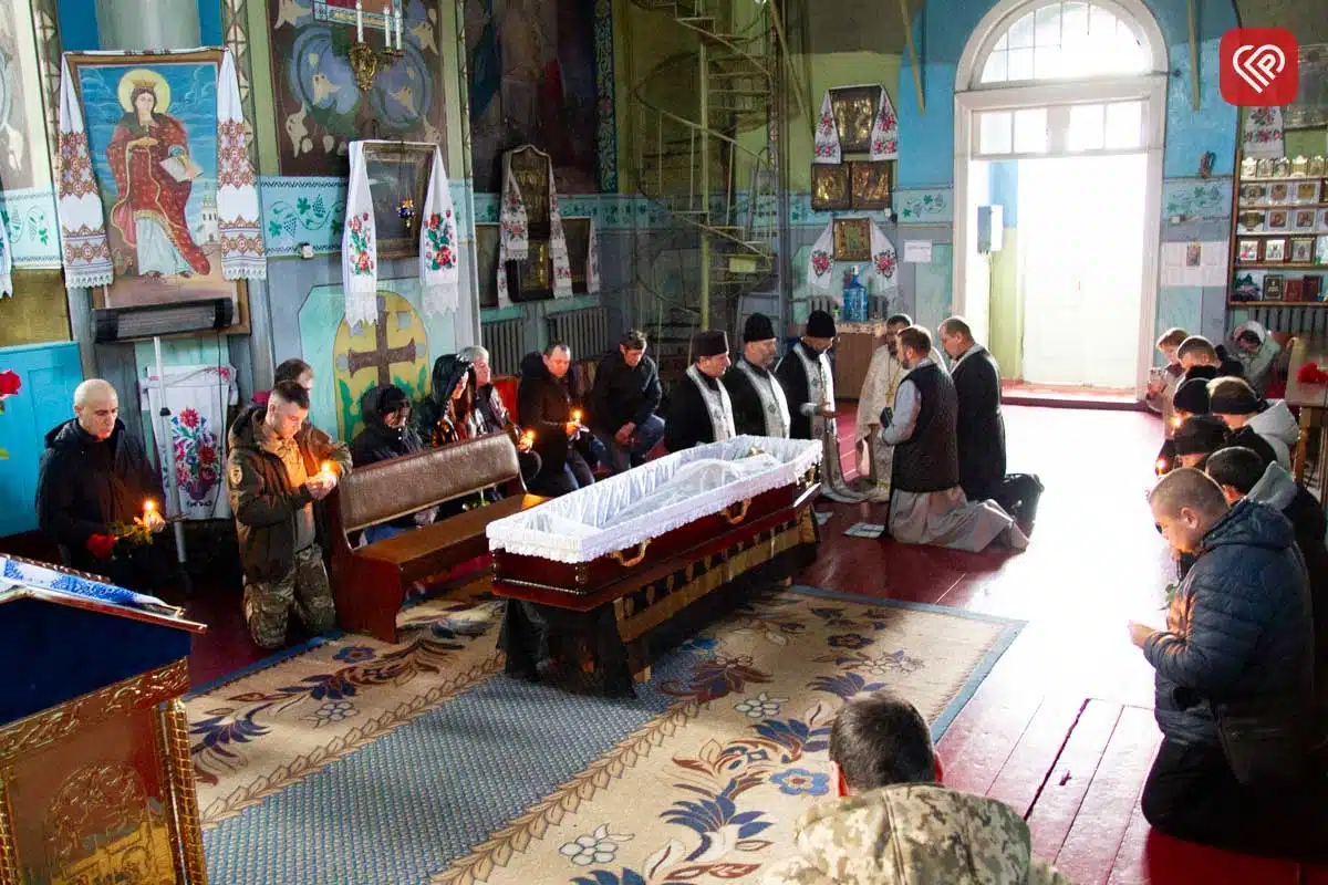 Під час прощальної молитви священник ПЦУ отець Анатолій звернувся до громади зі словами:
