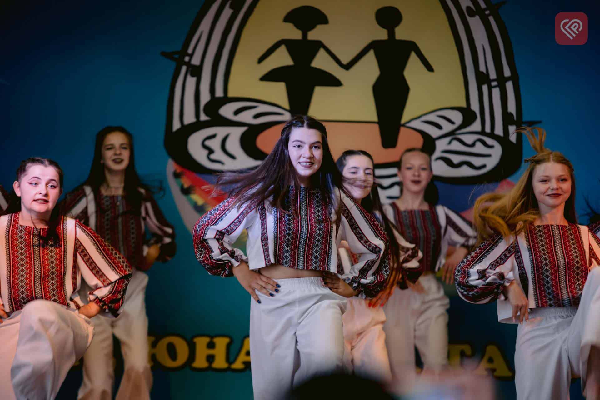 Вихованки зразкової хореографічної студії «Перлина» подарували глядачам неймовірний танок «Вечорниці (Дай Бог)», номер під назвою «За лісами, горами» і традиційну українську «Подоляночку».