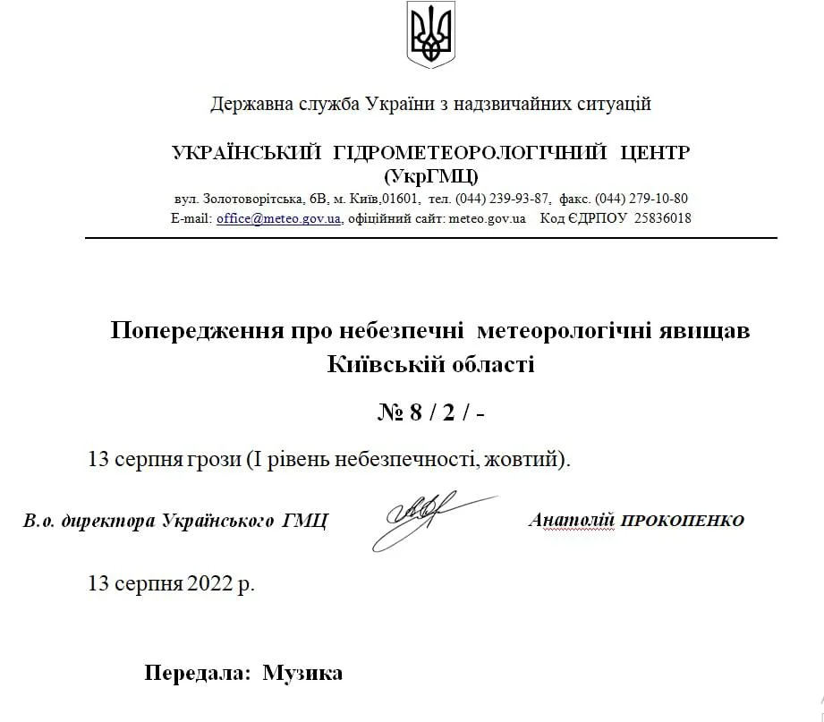 Повідомлення від УкрГМЦ
